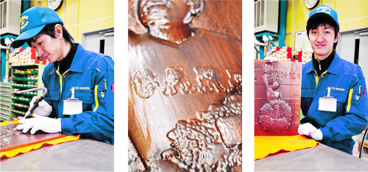 <フォトレリーフ仕上げをする若かりし頃の社長平岡良介>